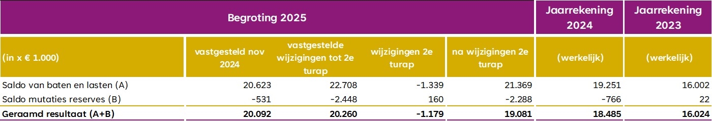 Daarnaast is in 2025 voor investeringskredieten een totaalbedrag van € 87.000 minder aan uitgaven geraamd in verband met aanpassing van de projectplanning. Verder heeft er een administratieve correctie plaatsgevonden van € 400.000 op de inkomsten. Per saldo resulteert dit in een nadeel van circa € 374.000.