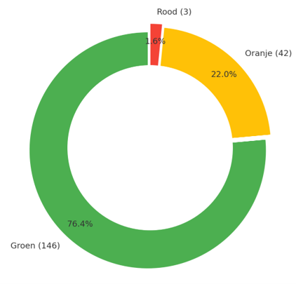 Van de 191 activiteiten staan er 146 op groen, 42 op oranje en 3 op rood. Dat betekent dat ongeveer driekwart van de activiteiten volgens planning verloopt en dat de meeste doelstellingen worden gehaald.