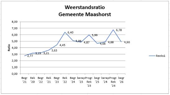 De weerstandsratio geeft aan in hoeverre de gemeente Maashorst in staat is haar risico's op te vangen. Hierbij is met de Raad afgesproken dat de norm tussen 1 en 2 ligt. De ratio ligt ruim boven de norm.